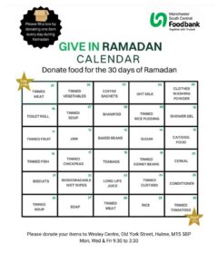 From the 17th February to the 18th March we invite you to donate one item a day (or £1 a day) to help support local families facing hunger and hardship.